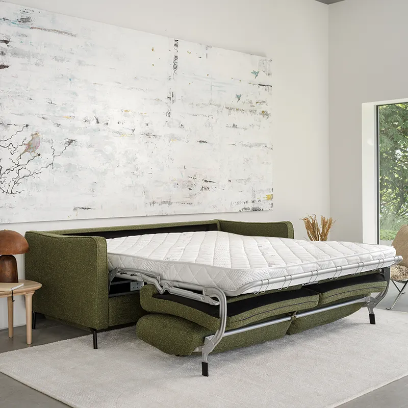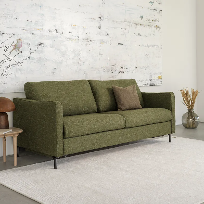 Oplev den sofistikerede sofa Sleepy med en smart og kompakt sovefunktion. Med et enkelt træk åbner du nemt senge-mekanismen med en hånd, og den tykke madras er designet til en god nats søvn. I løbet af dagen forvandles sofaen til et elegant og komfortabelt designmøbel med rene, stilige linjer. Sleepy fås med to forskellige armlæn og tilbyder flere valgmuligheder. Madrassen fås i to bredder: 140 cm og 160 cm.